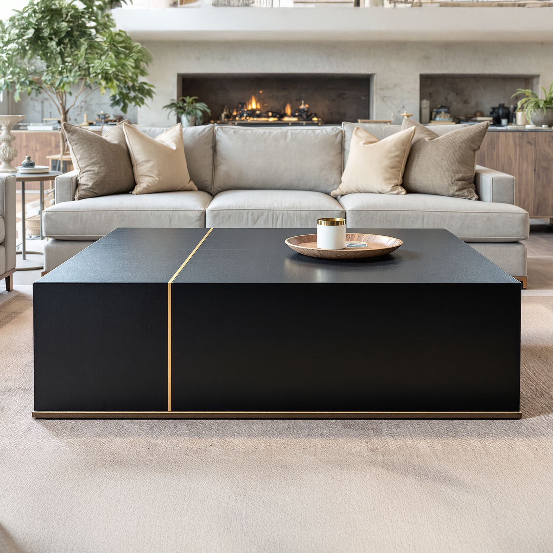 Waterfall 2 Large Square Cocktail Table - Leather wrapped